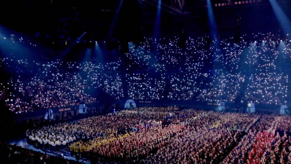 The big day! Thousands of students come together at the arena for an unforgettable concert experience.