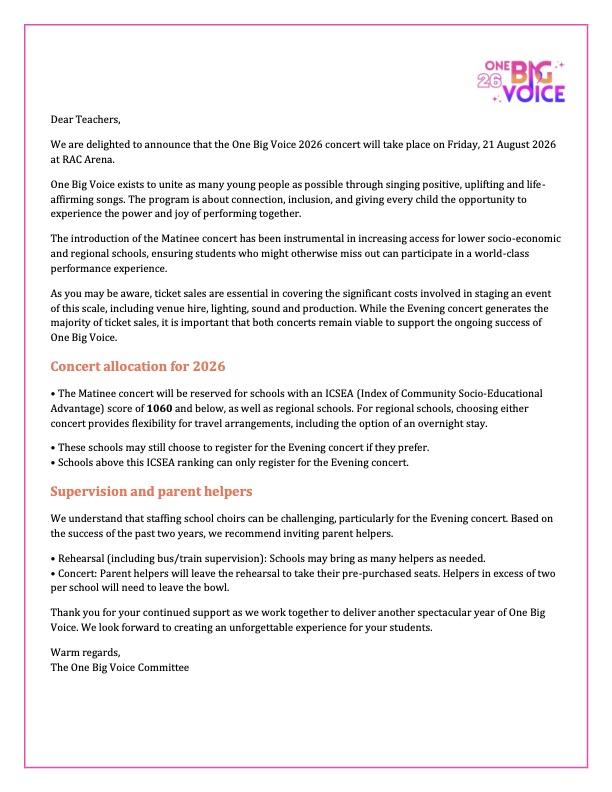 See separate flyers with Concert and Workshop dates and Fee Structure. Your school’s ICSEA affects your eligibility for the Matinee Concert, see below.